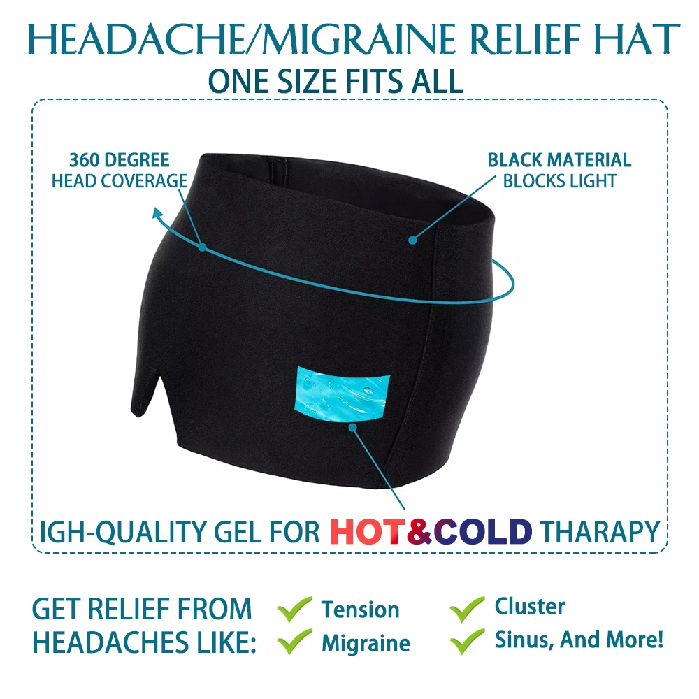 5:Grupos de clientes: tornando-se o chapéu de alívio de dor de cabeça reutilizável ideal para homens, mulheres e crianças que sofrem de dores de cabeça, enxaquecas ou tensão facial. Menos necessidade para remédios para dor de cabeça, óculos ou um travesseiro especial. É naturalmente uma força extra!